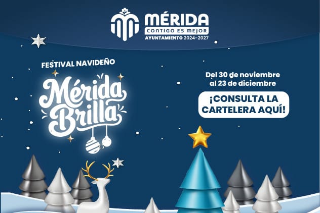 El Festival “Mérida Brilla 2025” se realiza del 30 de noviembre al 23 de diciembre en múltiples sedes de la ciudad.